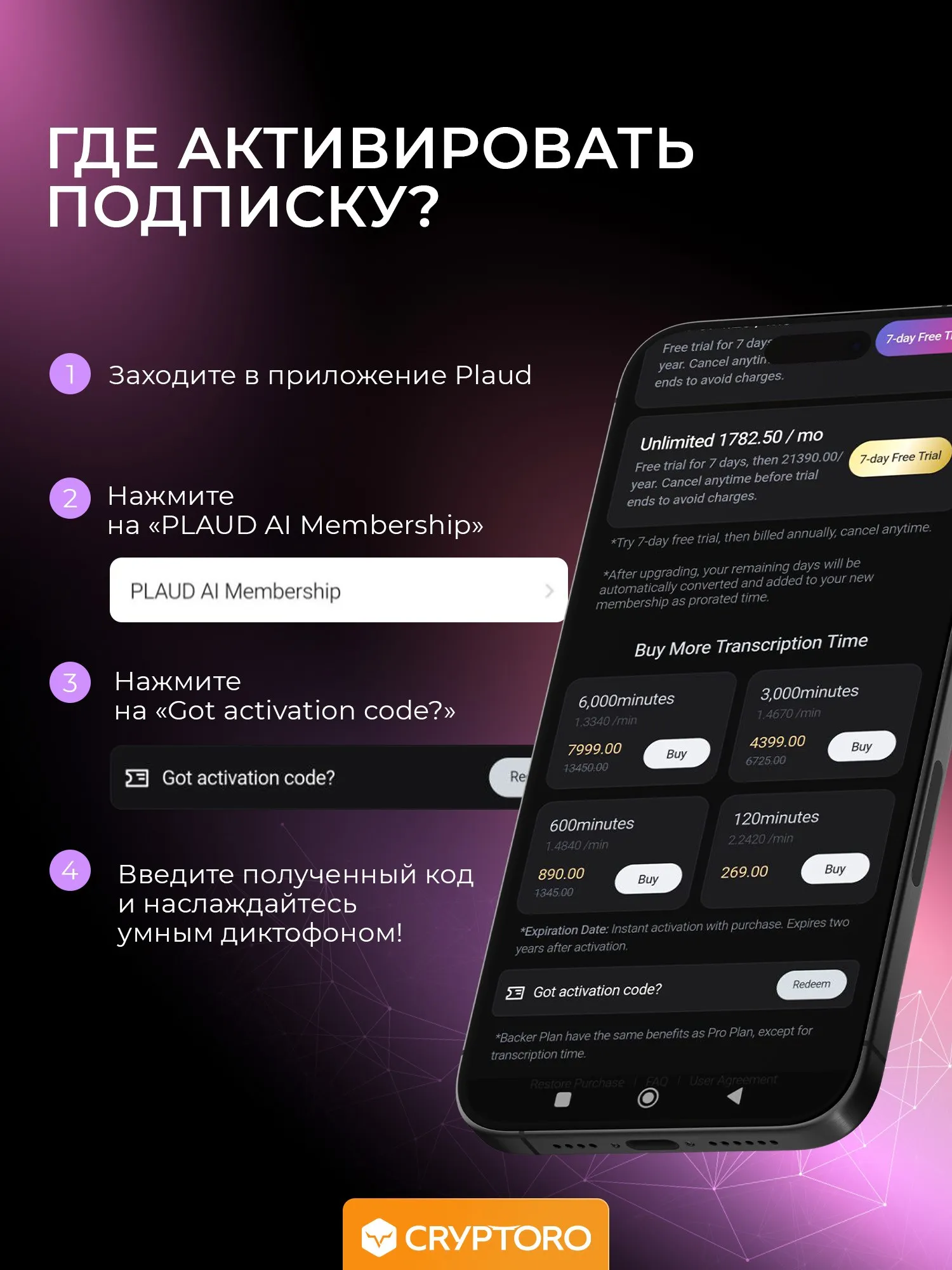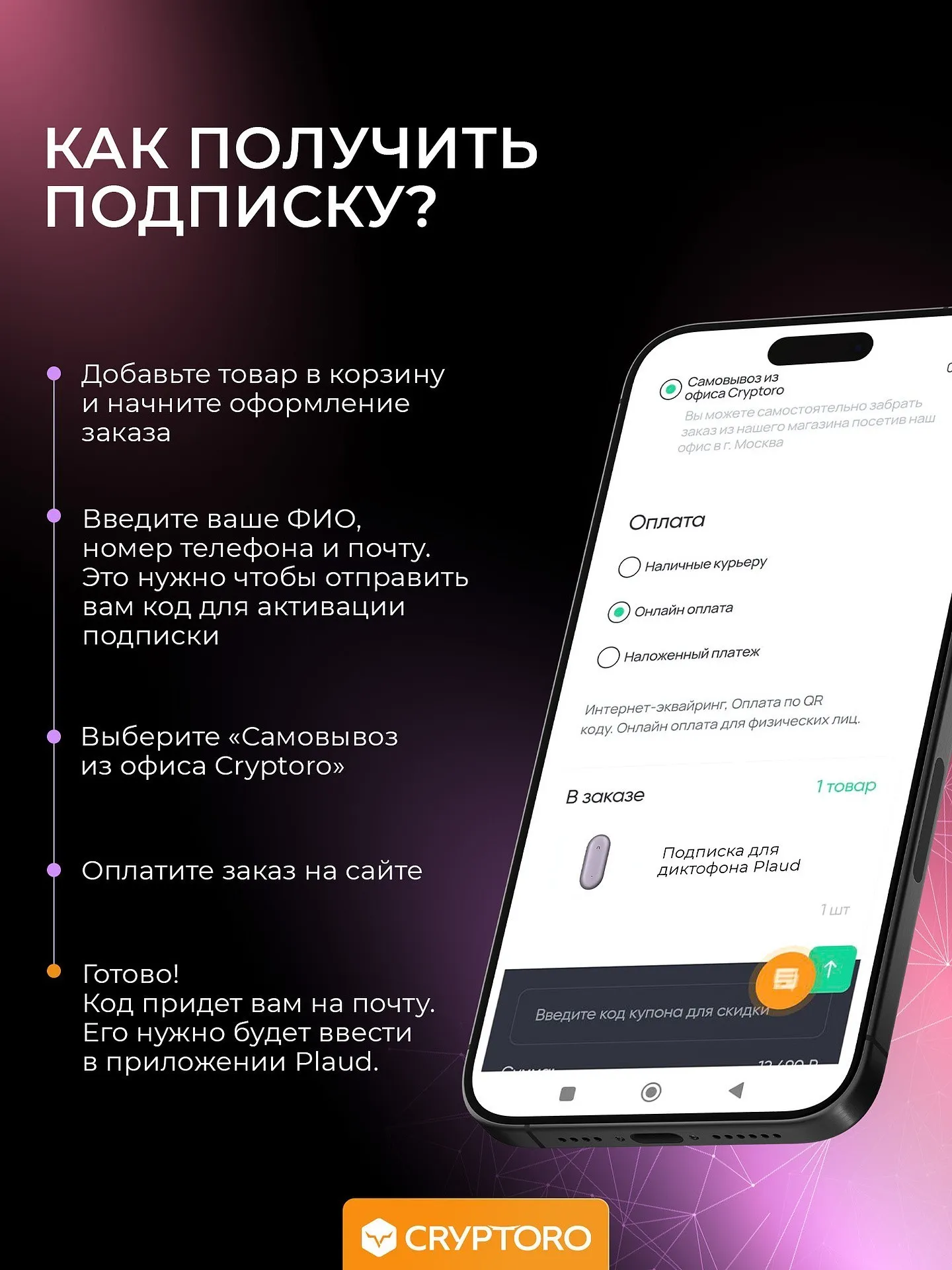 Годовая подписка PLAUD AI Unlimited Plan включает в себя: