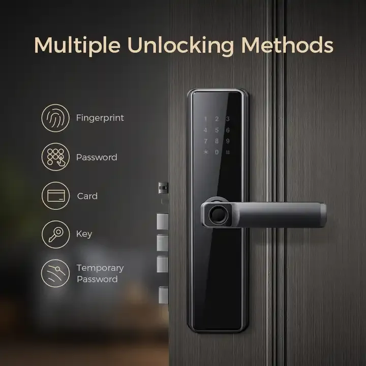 Способы открытия: Tuya WiFi, отпечаток пальца, NFC-карта, пароль, ключ.