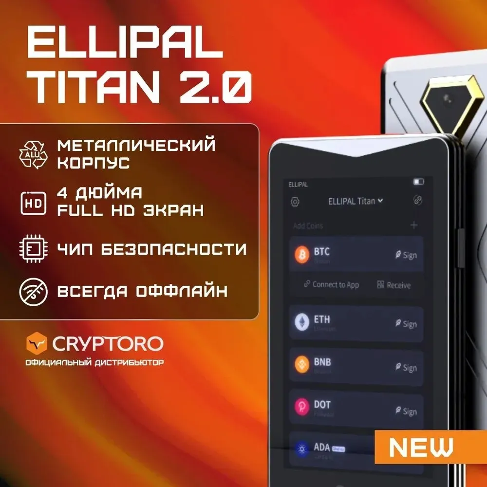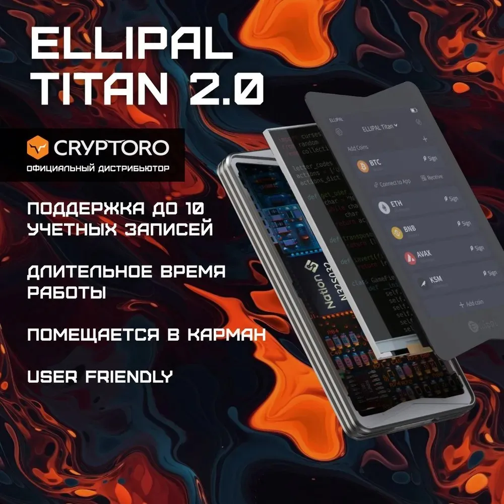 Холодный аппаратный криптокошелек, который только-только вышел на рынок и прибыл прямиком из Гонконга в Cryptoro. Кошельки линейки ELLIPAL - ELLIPAL TITAN 2.0 имеют передовую упаковку и являются самыми, безопасными и современными на рынке. Обеспечивая безопасное хранение и защиту приватных ключей, ELLIPAL Titan 2.0 - надежный холодный кошелек для защиты криптоактивов. Он предлагает непревзойденную защиту от онлайн- и офлайн-атак. Холодный кошелек работает в децентрализованной и отключенной от сети среде, обеспечивая полный контроль над криптоактивами. Оснащенный безопасным элементом CC EAL 5+, он обеспечивает непревзойденную защиту. Криптокошелек полностью металлический и защищен от физических атак. Есть приятное пользовательское взаимодействие с 4-дюймовым IPS-дисплеем и отзывчивым сенсорным экраном. Есть ряд дополнительных функций безопасности, таких как автоуничтожение и двухфакторная аутентификация. ELLIPAL Titan 2.0 совместим с устройствами на Android и iOS и поддерживает более 10 000 монет и токенов. В комплекте идет кабель для зарядки, адаптер безопасности, руководство пользователя, листы для восстановления мнемонической фразы и SD-карта. Это правильное решение для обеспечения безопасности криптоактивов с уверенностью.