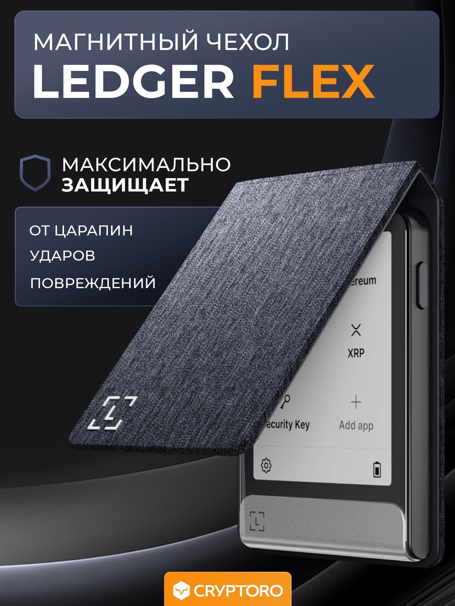 Магнитная защита: Магнитная интеграция с устройством Ledger Flex гарантирует надёжное и бесшовное соединение.