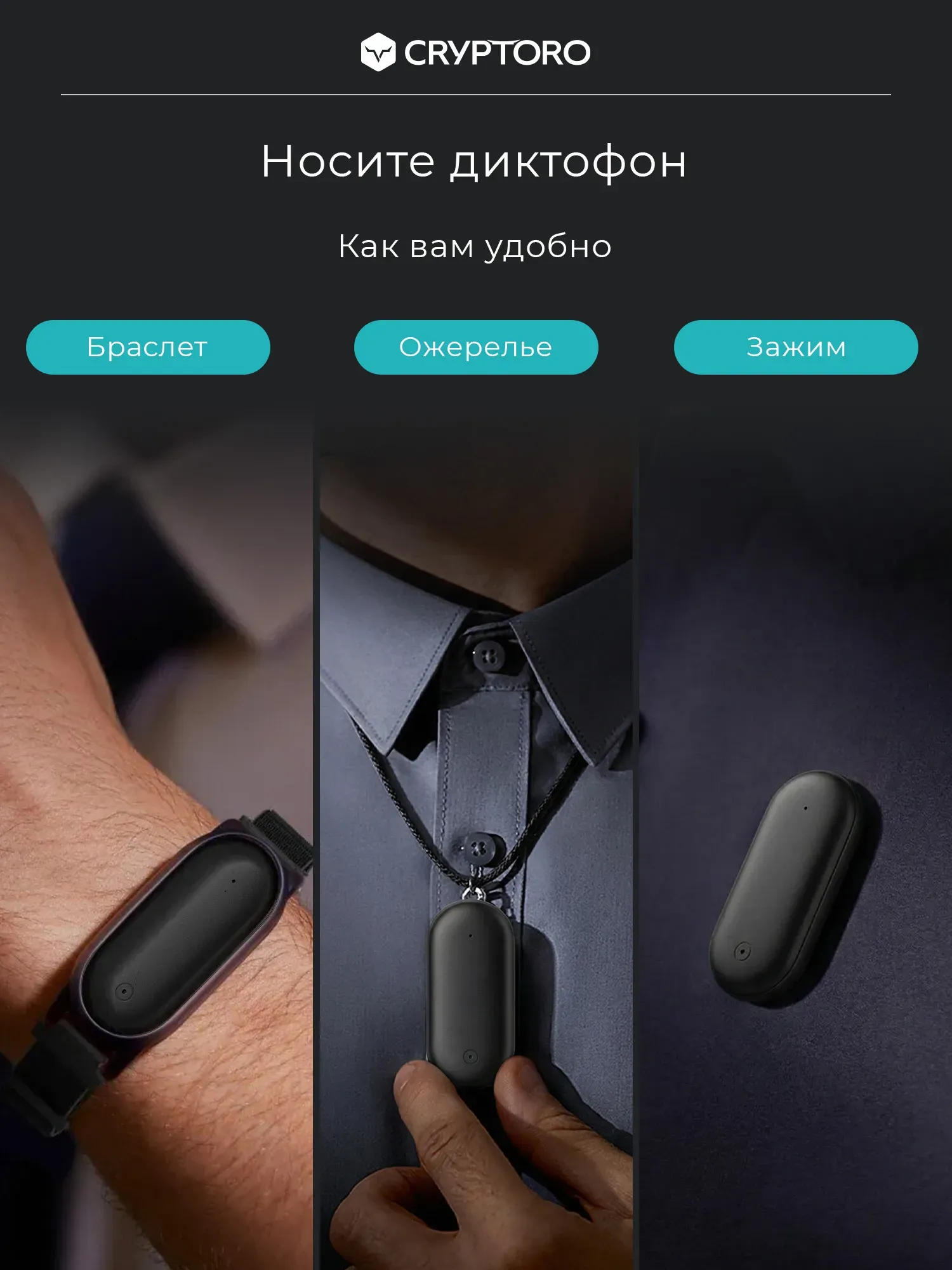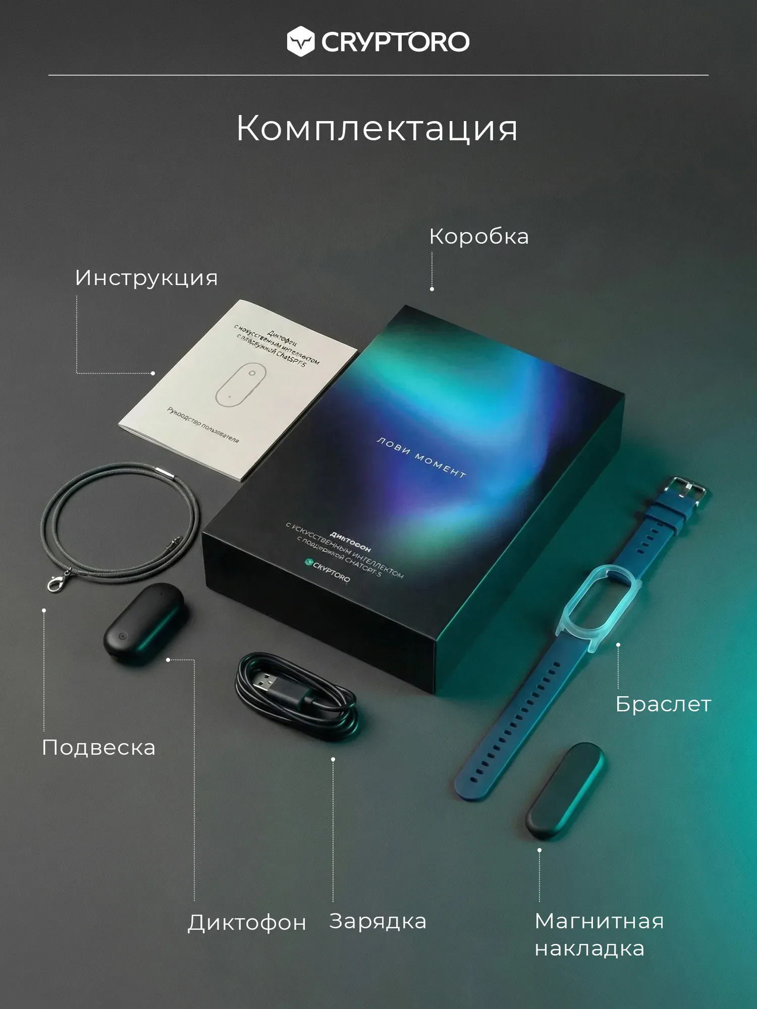 Умный диктофон с искусственным интеллектом для записи и транскрипции разговоров "Лови Момент" от компании CRYPTORO.