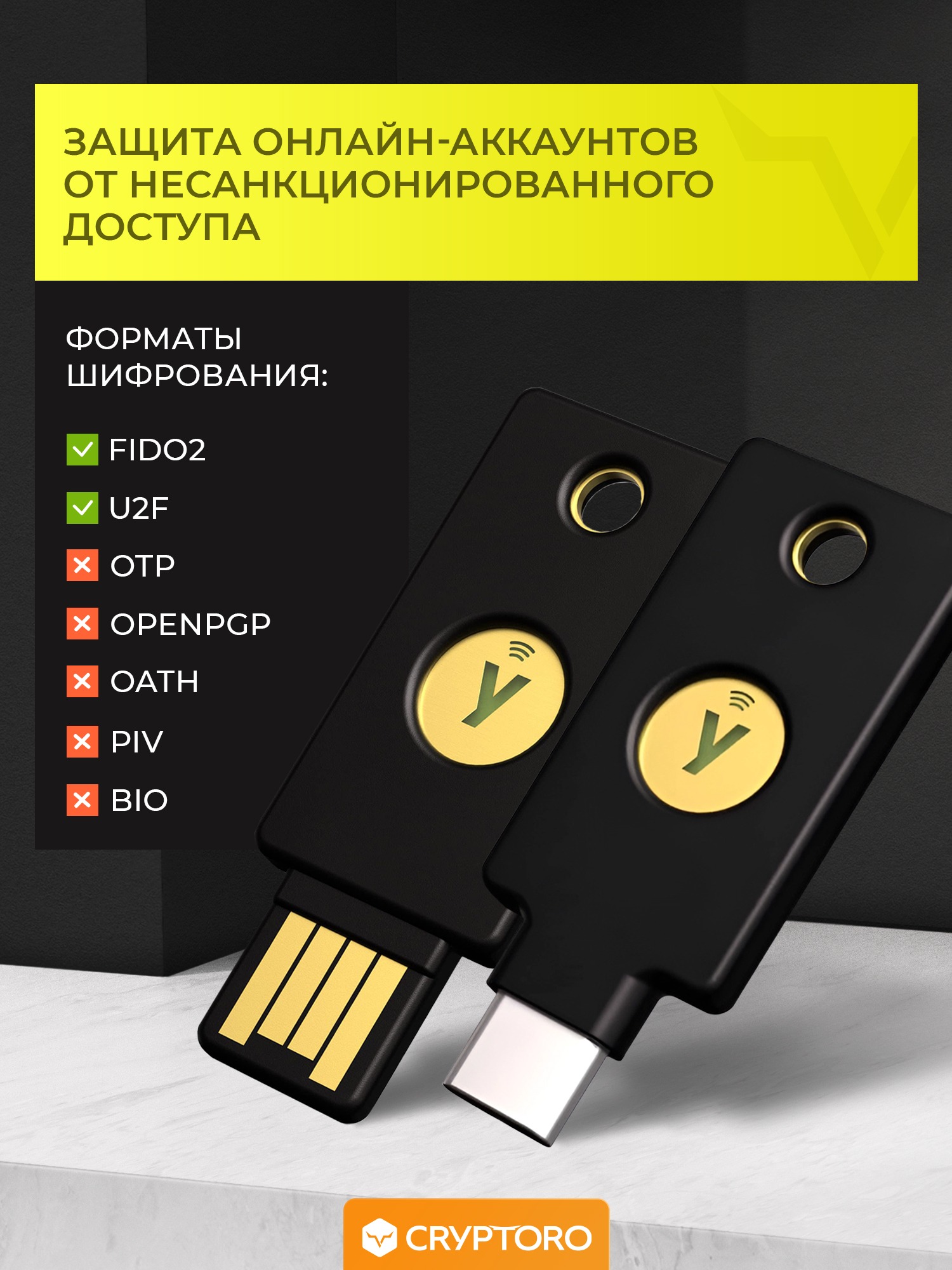 Покупатели нашего магазина Cryptoro часто просили сделать комбо аппаратных ключей со скидкой. И теперь, мы предлагаем топовую пару ключей YubiKey - YubiKey 5 NFC и YubiKey Security Key NFC USB-А.