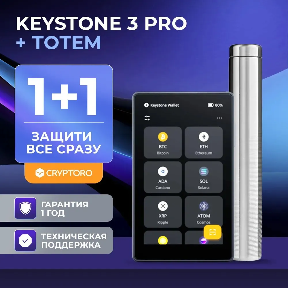 Встречайте комбо-набор от CrypToro - криптокошелек Keystone 3 Pro и устройство для хранения мнемонических-seed фраз Cryptoro Totem. Комплект подойдет для любителей безопасности и защиты криптоактивов или поможет познакомить членов семьи с миром криптовалют.