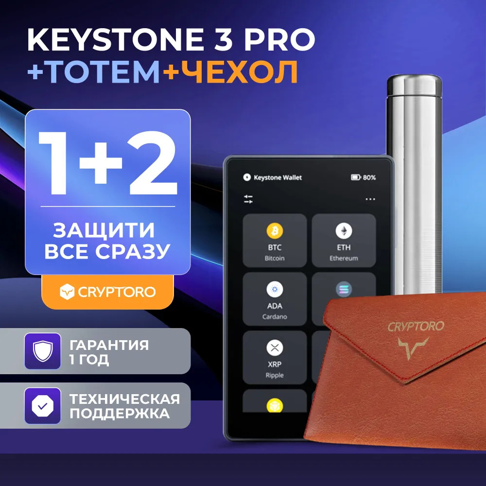 Встречайте комбо-набор от CrypToro - криптокошелек Keystone 3 Pro и устройство для хранения мнемонических-seed фраз Cryptoro Totem + чехол. Комплект подойдет для любителей безопасности и защиты криптоактивов или поможет познакомить членов семьи с миром криптовалют.