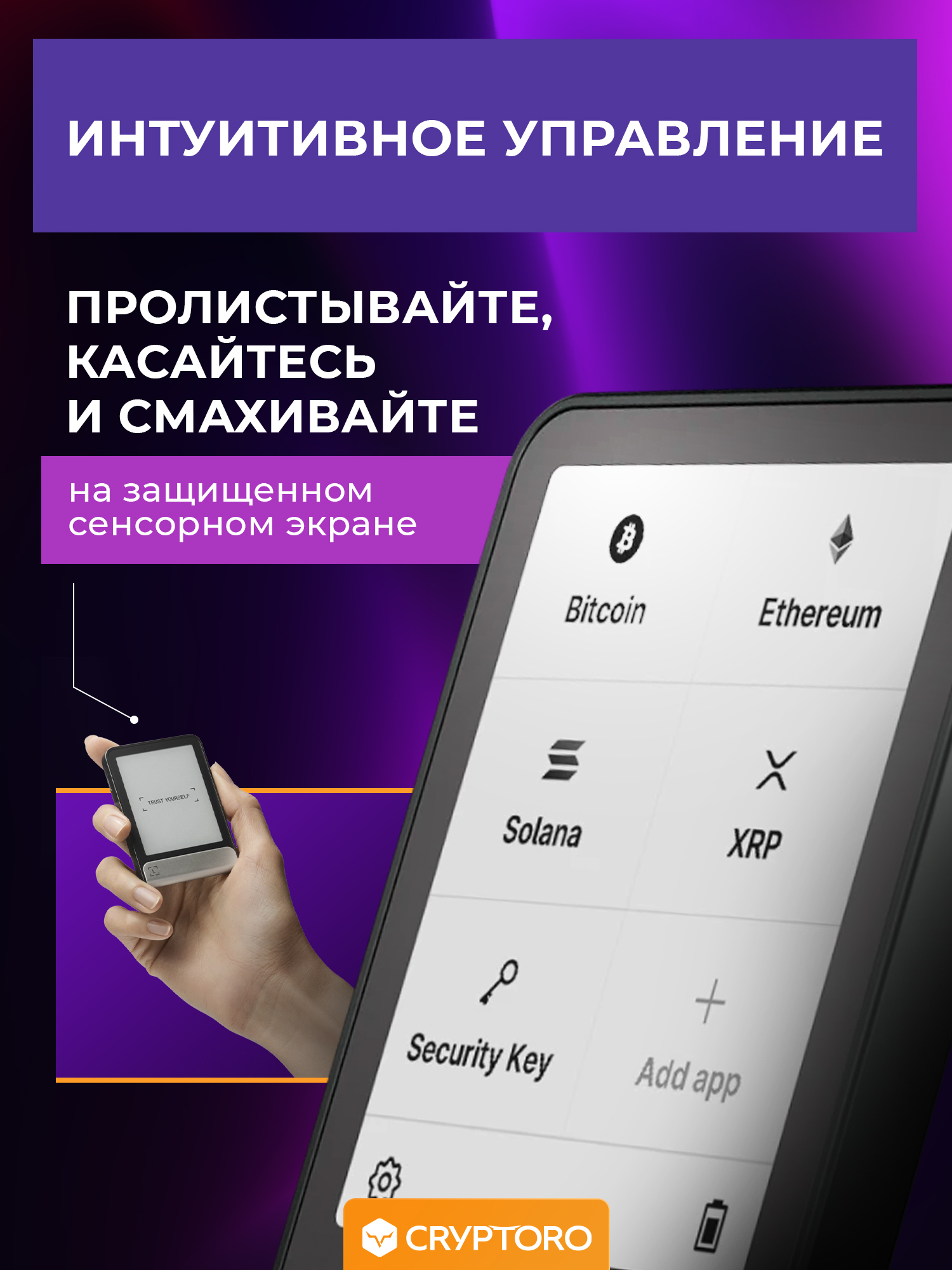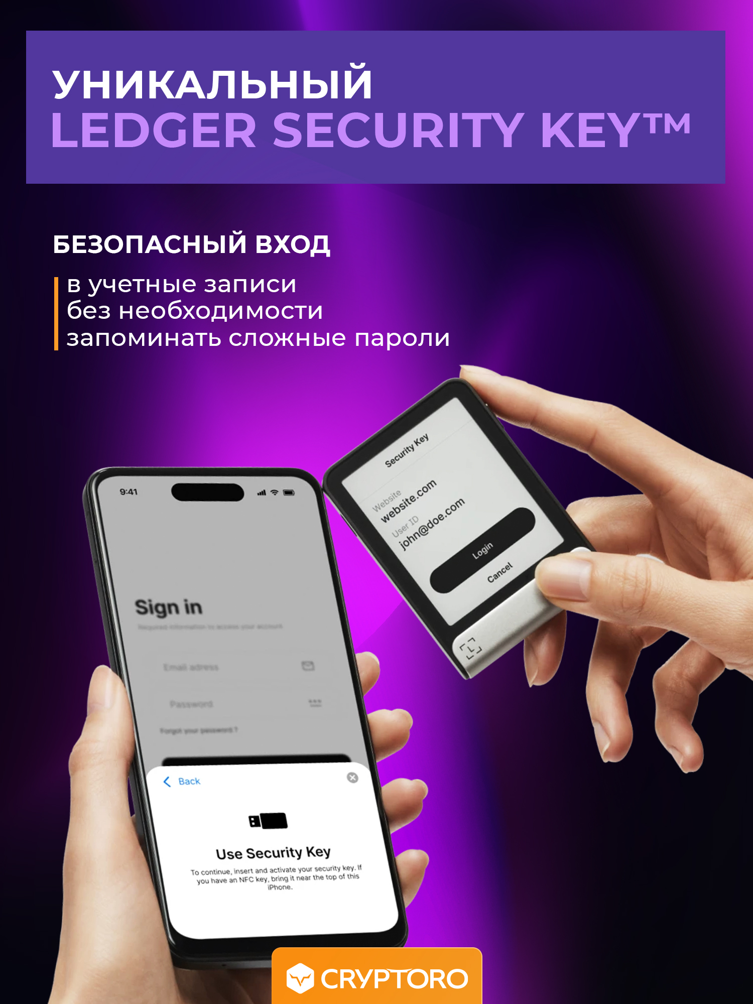 Бескомпромиссная безопасность: Основывается на передовом чипе Secure Element и операционной системе Ledger OS.