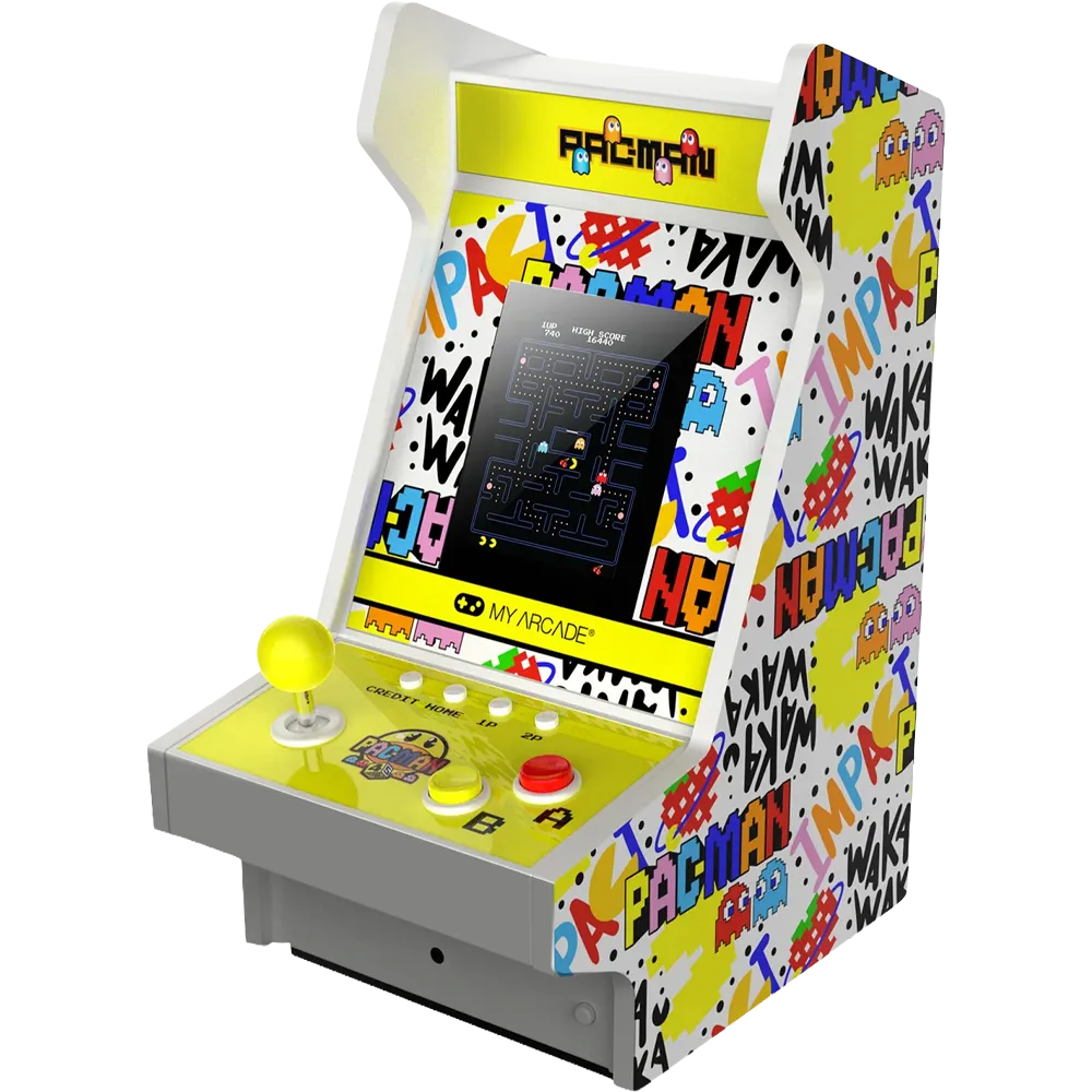 My Arcade PAC-MAN 45th Anniversary Mighty Player — коллекционная настольная аркада в честь 45-летия легенды. Выполнена в классическом деревянном корпусе с эффектным подсвечиваемым баннером. Оснащена ярким 3,5-дюймовым вертикальным дисплеем и включает 5 лицензионных игр: классический Pac-Man (в обычном и ускоренном режимах), Pac-Man Plus, Super Pac-Man и Pac & Pal. Работает от аккумулятора, имеет выход на наушники и поставляется с международным адаптером питания.