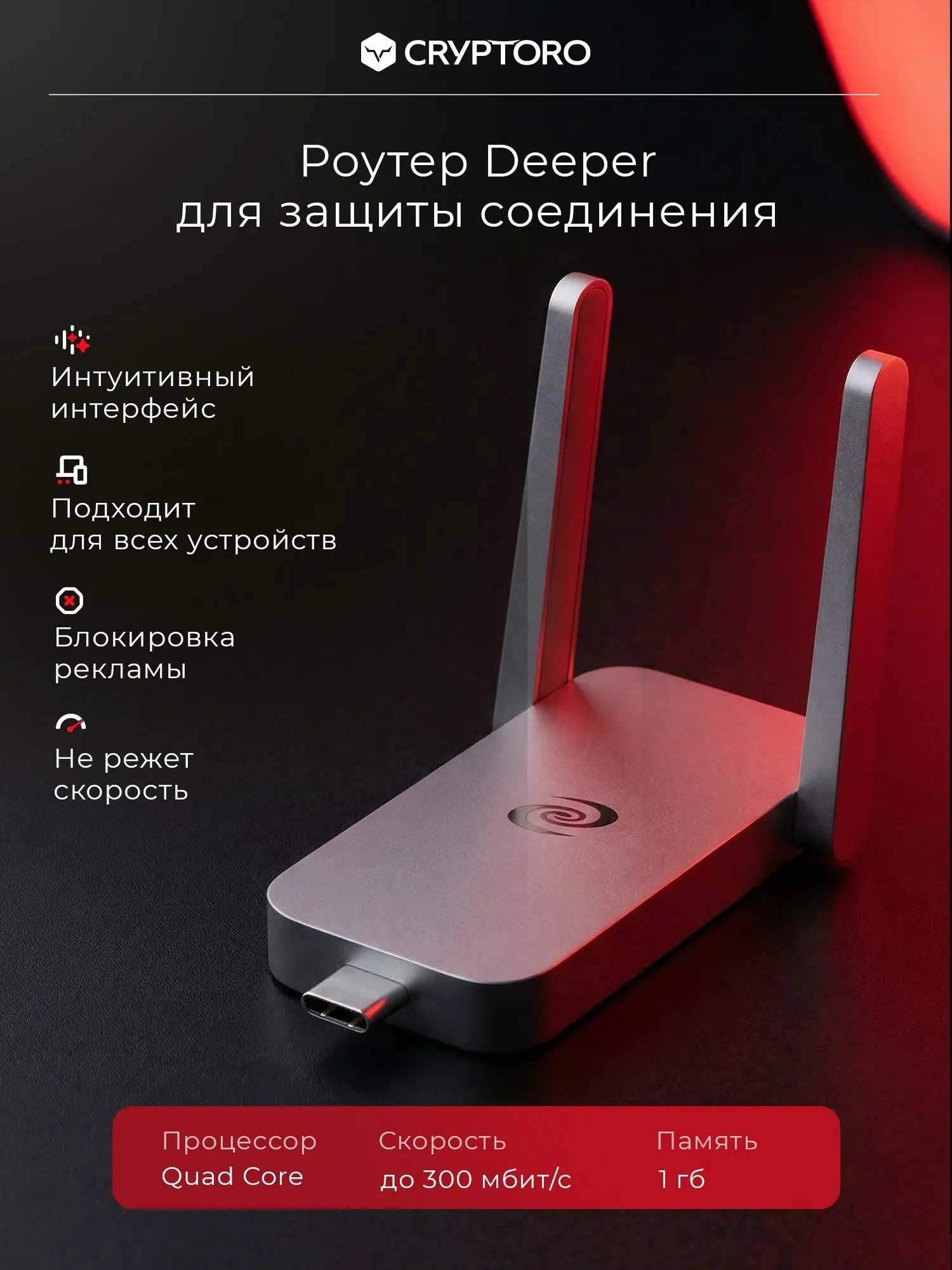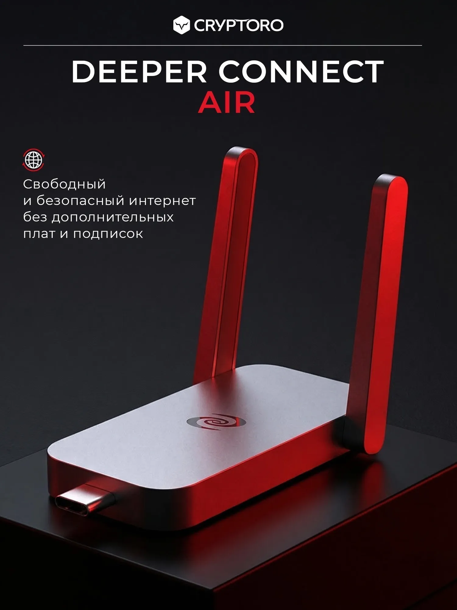 Deeper Connect Air — ультракомпактный портативный роутер для защиты интернет-соединения с децентрализованной технологией DPN, скоростью до 300 Мбит/с и вечным использованием без подписки, который обеспечивает анонимность, блокировку рекламы и защиту всех устройств даже при работе в общественных Wi-Fi сетях по всему миру.