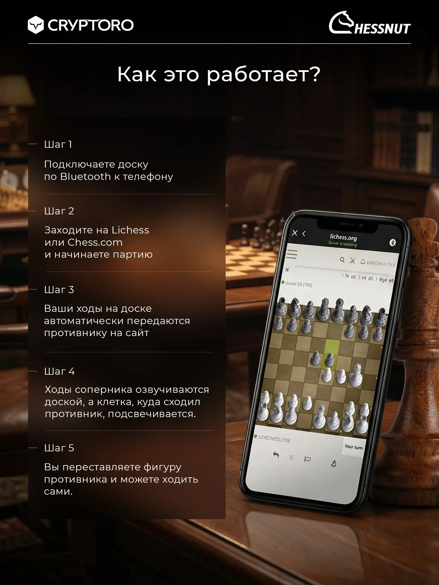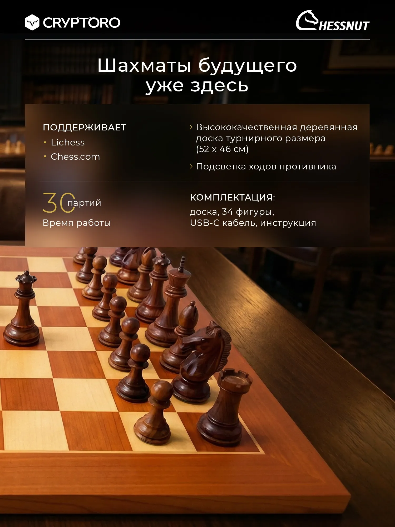 Электронная шахматная доска, 34 шахматные фигуры с сенсорами, зарядный кабель Type-C, руководство пользователя, мешочки для фигур