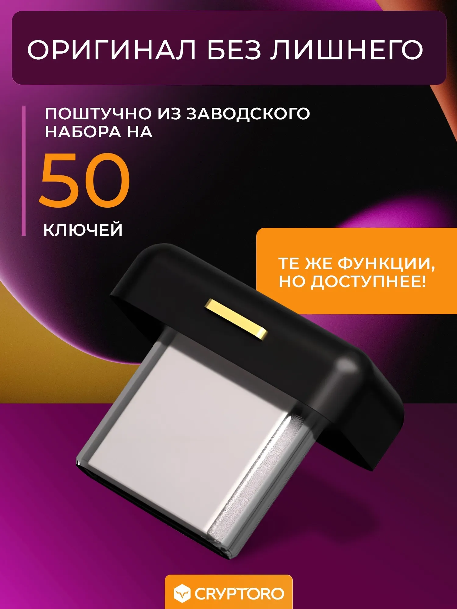 В ассортименте доступны множество ключей Yubikey, например Yubikey 5, Yubikey 5 NFC, Yubikey 5C NFC, Yubikey 5С Nano, Yubikey 5 Nano, Yubikey 5Ci для вашего iPhone, Yubikey Security Key NFC USB-А и Type C, а так же ключи с биометрией YubiKey Bio USB-A и Type-C. Для безопасного хранения ключей рекомендуем использовать водонепроницаемую алюминиевую чехол-капсулу CRYPTORO CAPSULE.