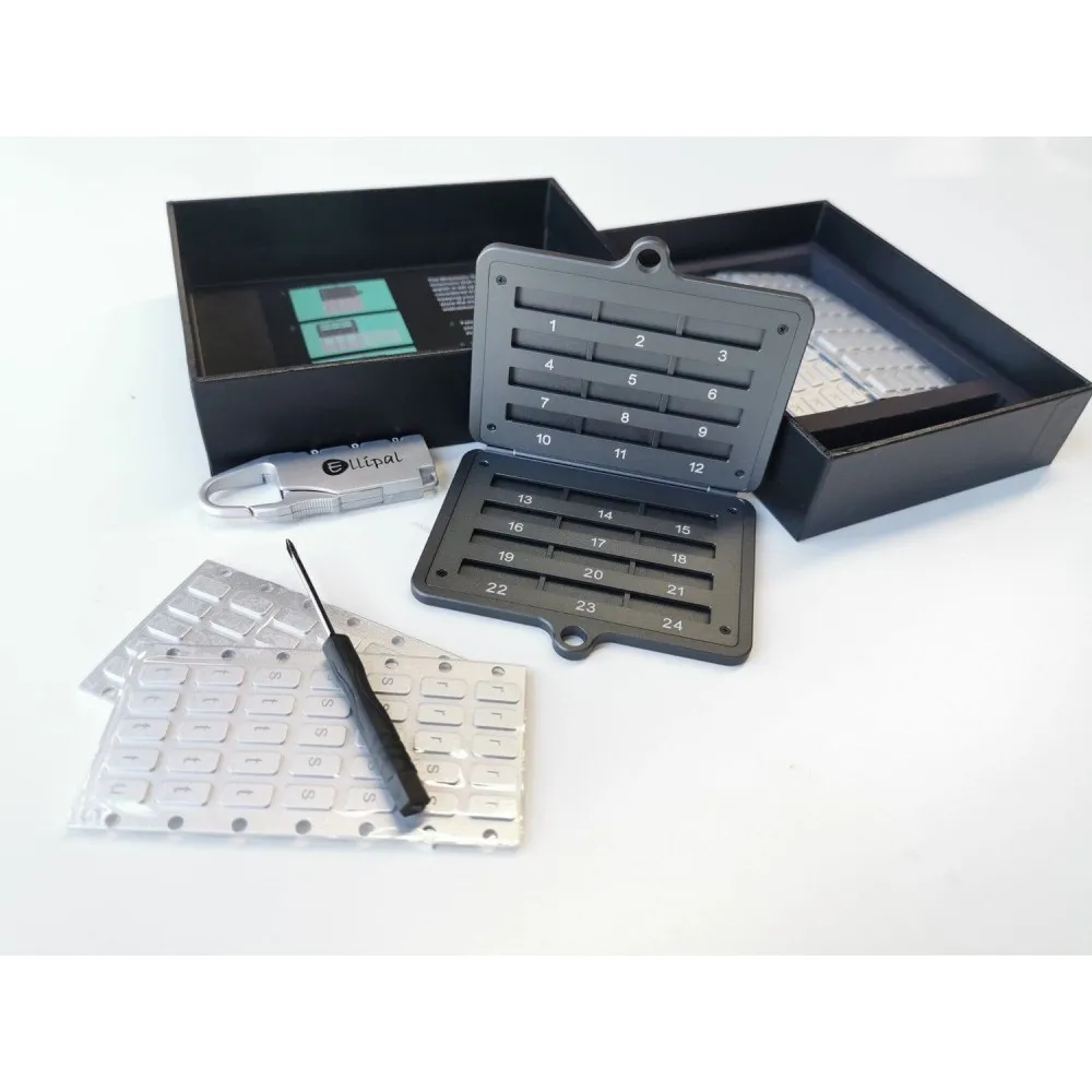 Ellipal Mnemonic Metal – это устройство резервного копирования, которое используется для обеспечения сохранности самого главного пароля – мнемонической фразы (Seed). Согласно предложению BIP39 фраза может состоять из 12, 18 или 24 английских слов. Сохранение фразы на устройстве, изготовленном из алюминия, препятствует ее физической порче, как это может произойти с бумажным носителем. Ellipal Mnemonic Metal – это надежное устройство резервного копирования, которое обеспечивает абсолютную сохранность вашей мнемонической фразы Seed. Если вы являетесь пользователем криптовалютной системы, то вы безусловно знаете, насколько важно сохранять защищенные пароли и ключи доступа в безопасном месте. Ваша мнемоническая фраза, является ключом ко всем вашим средствам, и без нее у вас может возникнуть серьезный риск потери денег. Главным преимуществом Ellipal Mnemonic Metal является его надежность. Оболочка устройства выполнена из прочного алюминия, который защищает от механических повреждений, воды, огня и других возможных угроз. Покупка Ellipal Mnemonic Metal является оптимальным состоянием для обеспечения высокого уровня безопасности и защиты вашей мнемонической фразы. Объедините простоту и функциональность с высокой скоростью и надежностью. Не откладывайте на завтра свою безопасность - приобретите Ellipal Mnemonic Metal уже сегодня, чтобы обеспечить спокойствие и защитить свои деньги от возможных угроз.