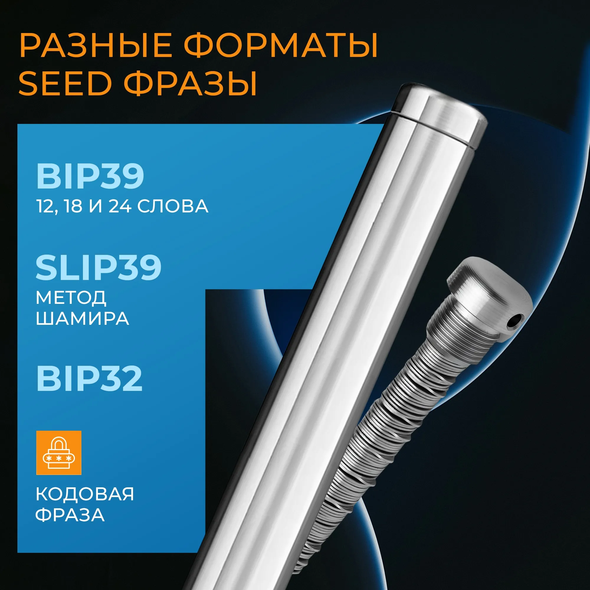Cryptoro Totem Max — улучшенный инструмент резервного копирования для автономного хранения ценных данных без участия третьих лиц. Прочное металлическое устройство, предназначенное для работы в экстремальных условиях, работает практически при любых обстоятельствах. Устройство совместимо с большинством алгоритмов обмена секретами и генерации ключей. Одна капсула является может хранить исходную фразу или пароль, состоящий из 24 слов, сокращенных до первых 4 букв. Также позволяет хранить пароли и использовать печатные символы ASCII (96 различных символов) Технические характеристики: - Материал: Нержавеющий металл - Выдерживает до 1400 °С - BIP39 (12,18, 24 слова сокращенные по 4 буквы), SLIP (4-буквенные аббревиатуры от сидов восстановления из 20 слов) - Печать вскрытия - Секрет открытия, отверстие под замок - Устройство совместимо с известными аппаратными кошельками Также, есть в наличии аппаратные кошельки Trezor, Ledger, SecuX, BitBox, Keystone, OneKey и др. Пишите или звоните для уточнения.