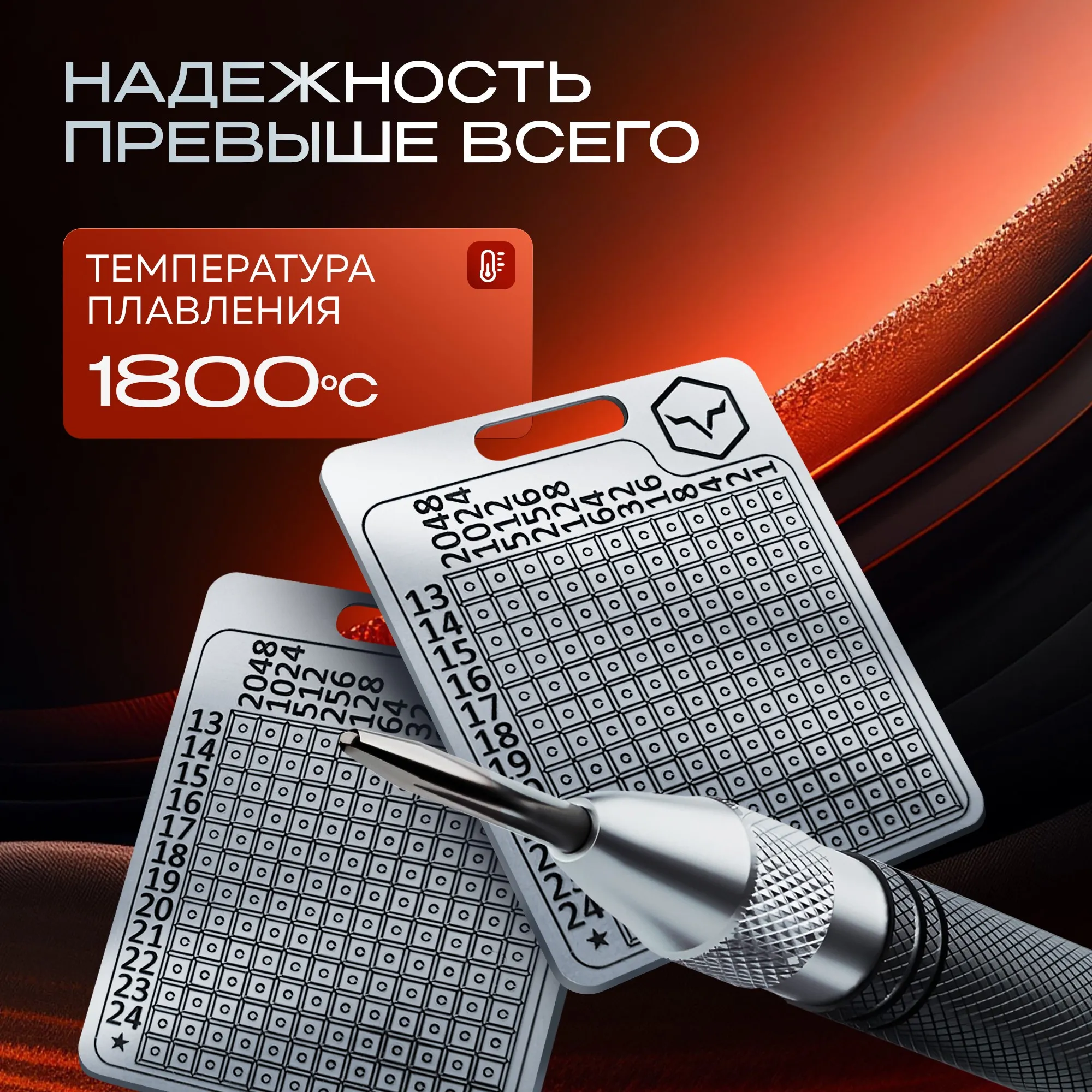 Представляем Cryptoro Svarog - идеальную резервную пластину для вашего аппаратного кошелька. Изготовленный из стали 302 марки, может выдержать температуры до 1300°C. Может храниться в кармане, бумажнике или на связке ключей, куда бы вы ни пошли. Cryptoro Svarog хранит ваши seed фразы восстановления в качестве резервной копии вашего аппаратного кошелька. В комплект входят две пластины и шило, которое позволяет вам соответствующим образом отмечать точки на резервной пластине в соответствии с вашими фразами восстановления. Вы можете хранить до 24 слов восстановления, каждая из которых генерируется из списка слов BIP39. Cryptoro Svarog умно помогает вам записывать номер каждого слова восстановления. Размер пластины примерно четверть от кредитной карты. Потеря доступа к вашим средствам криптовалюты - это сценарий, которого никто не хочет представлять. И здесь Cryptoro Svarog приходит на помощь, предоставляя безопасную резервную копию для вашей ценной информации. Благодаря своему элегантному и компактному дизайну, вы можете носить его с собой в любое время и в любом месте. Не полагайтесь на хрупкие бумажные листочки, чтобы сохранять безопасность ваших фраз восстановления, когда у вас может быть прочная резервная пластина. Вложение в Cryptoro Svarog - это вложение в безопасность и защиту ваших криптовалютных активов. Не ждите момента когда будет поздно, приобретайте Cryptoro Svarog сегодня и будьте спокойны, зная, что ваша информация в безопасности.