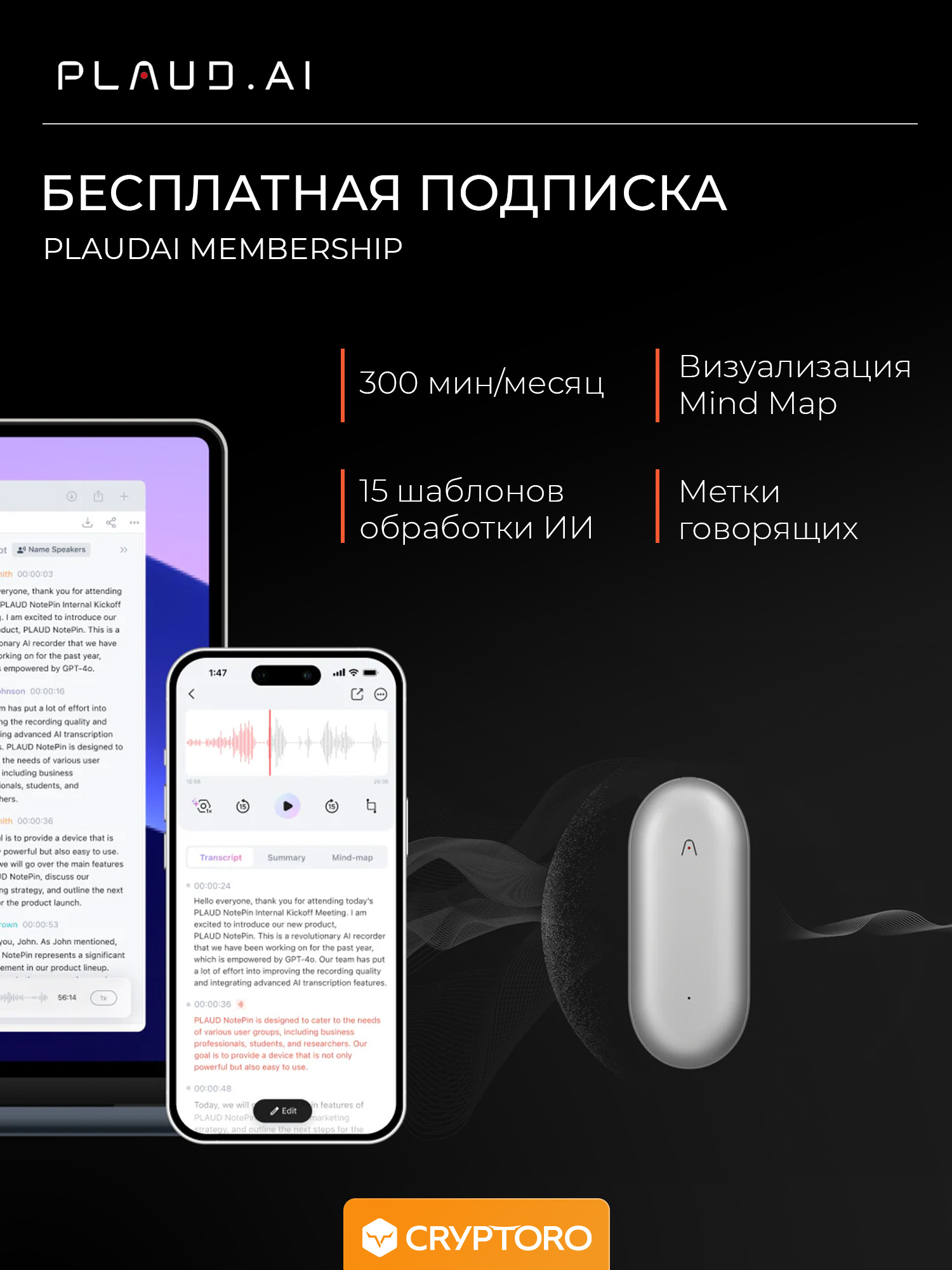 Устройство поддерживает передовые нейросети GPT-4o и Claude 3.5 Sonnet, что позволяет автоматически расшифровывать аудиозаписи на 112 языках, включая русский. Система предусматривает регулярное обновление моделей искусственного интеллекта.