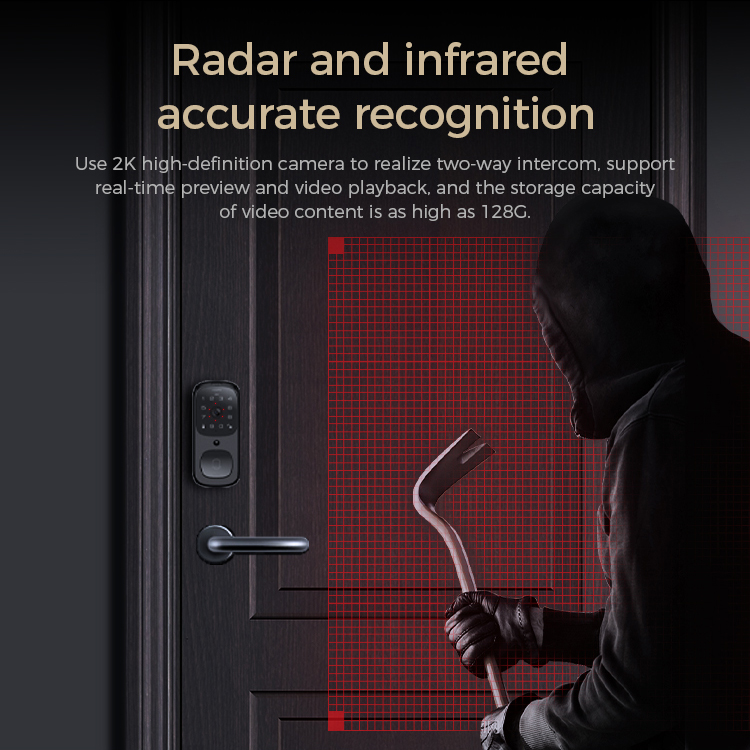 Многоуровневая защита: 2K HD камера, технология PIR и биометрическое распознавание отпечатков пальцев обеспечивают безопасность вашего дома.