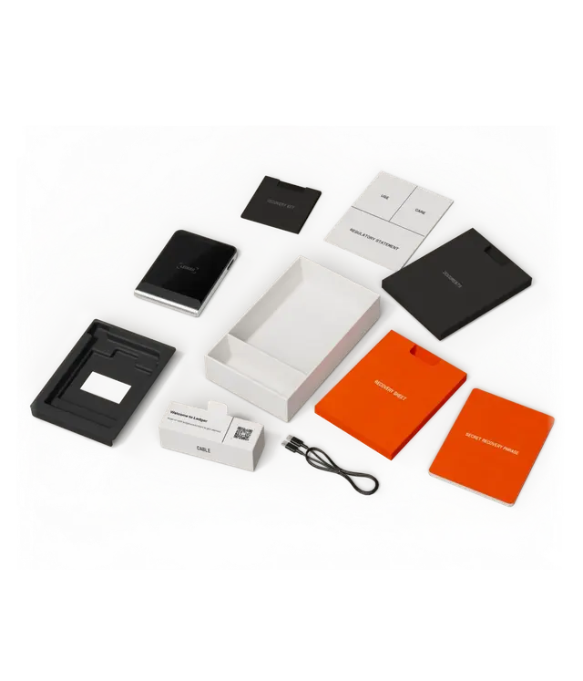 1x Ledger Flex, 1х кабель USB-C/USB-C, 3х листа для фразы восстановления, Recovery Key, Руководство Ledger Flex
