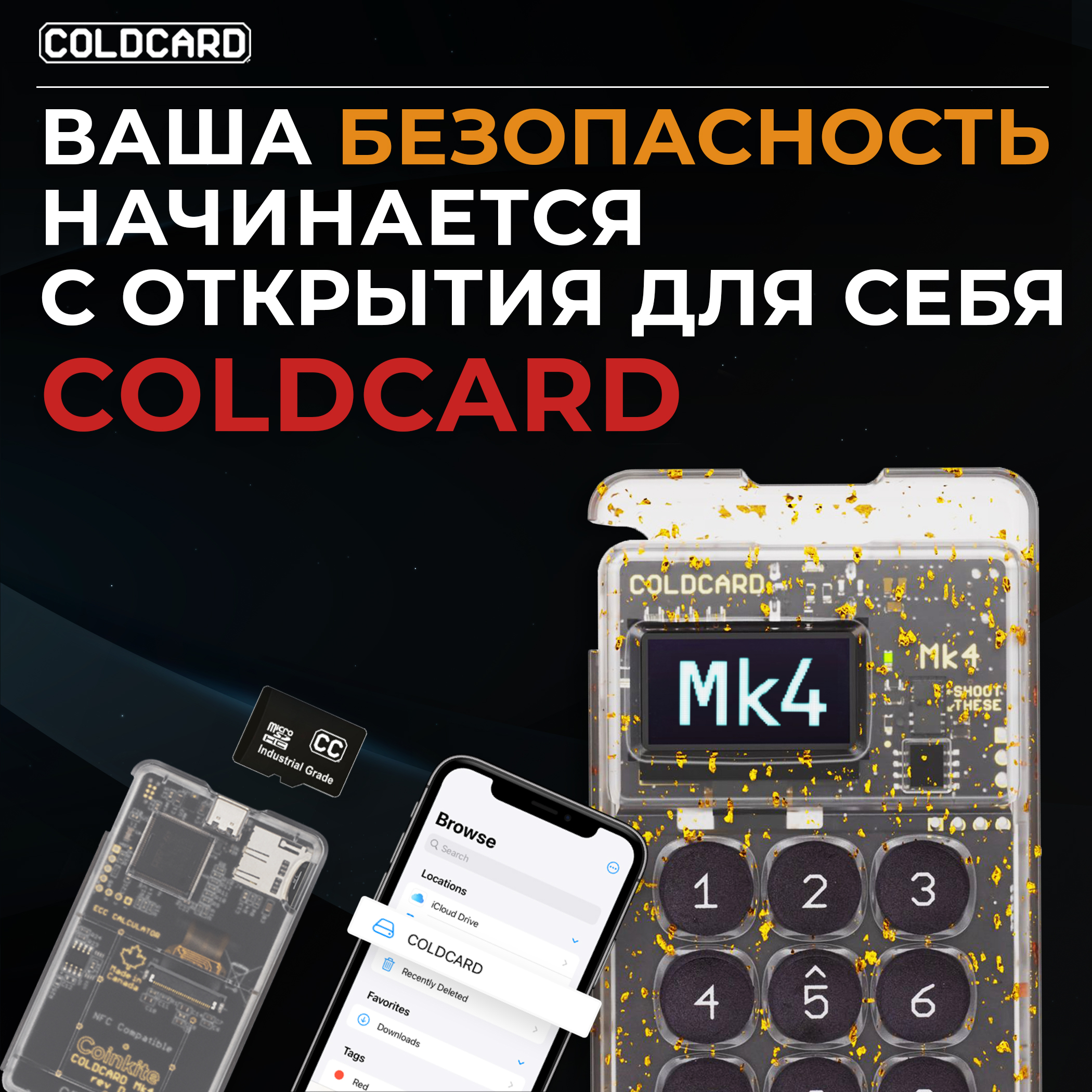 Холодный кошелек Coldcard MK4  - один из наиболее известных девайсов в мире, наравне с Trezor, Coolwallet Pro, Keystone, Secux, Ellipal и Bitbox.