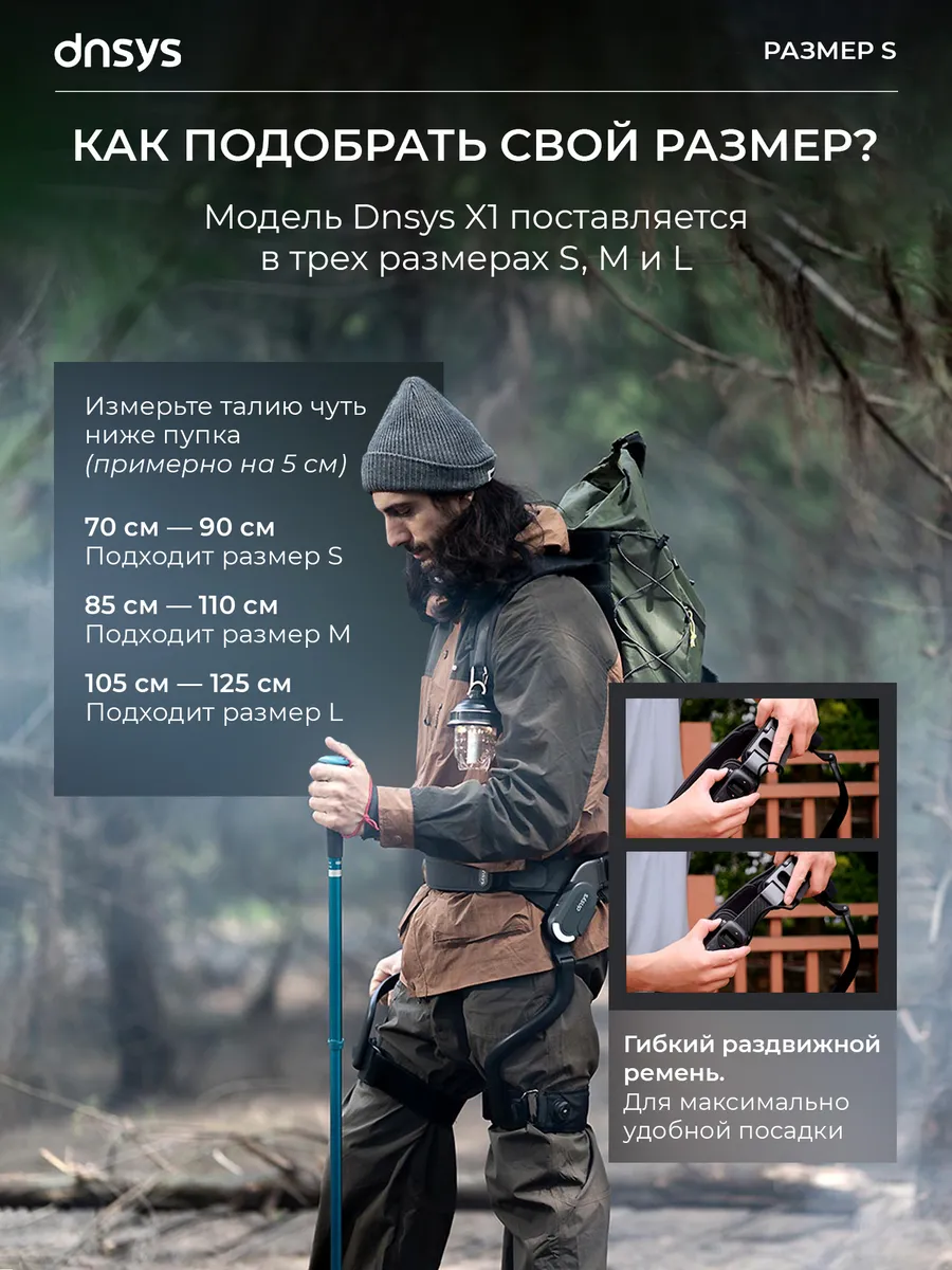 Это носимое устройство, которое крепится на талию и бедра, помогая пользователям преодолевать большие расстояния с меньшими усилиями, экономя до 50% энергии и увеличивая дальность хода на 25 км. Оно идеально подходит для любителей outdoor-активностей, людей с ограниченной подвижностью (например, после операций на коленях) или тех, кто хочет усилить свои физические возможности.