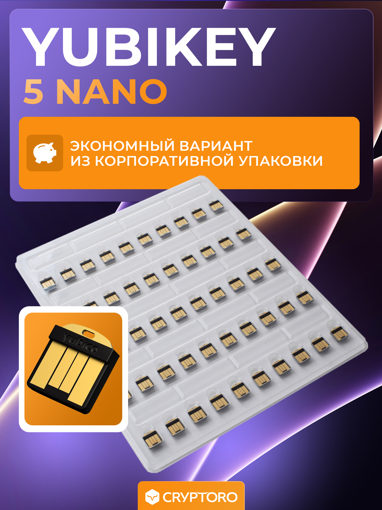 Yubikey 5 Nano – прочное и водонепроницаемое устройство аутентификации. Надежно защищает аккаунты email, бирж и соцсетей от несанкционированного доступа на аппаратном уровне. Компактное устройство, незаметное и удобное в использовании. Устройство поддерживает подключение через USB-A. Доступна мультифакторная аутентификация без паролей с протоколами U2F, FIDO, OpenPGP, Yubico OTP и PIV.